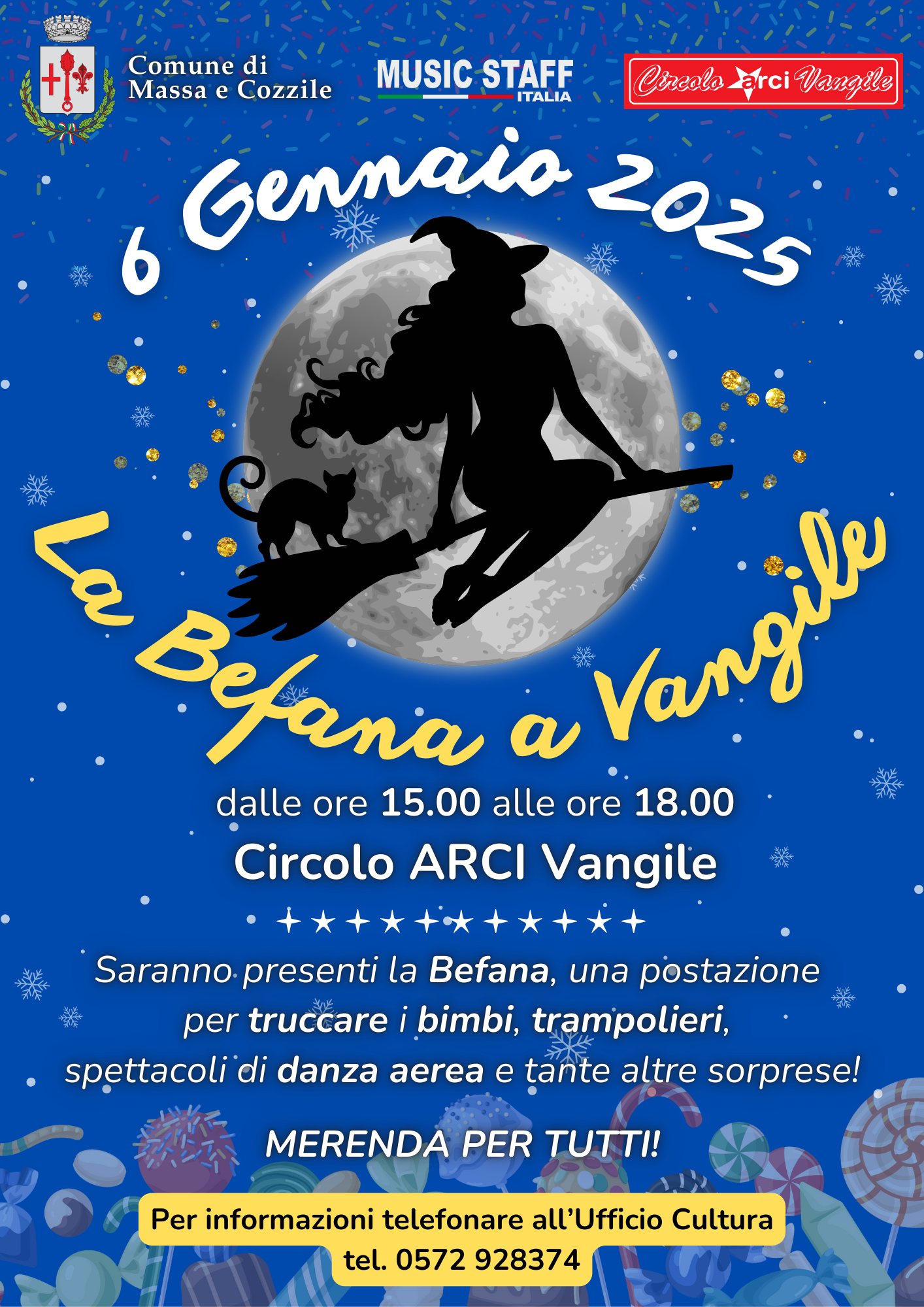 Lunedì 6 gennaio 2025, dalle 15 alle 18, non perdete l’arrivo della Befana a Vangile.