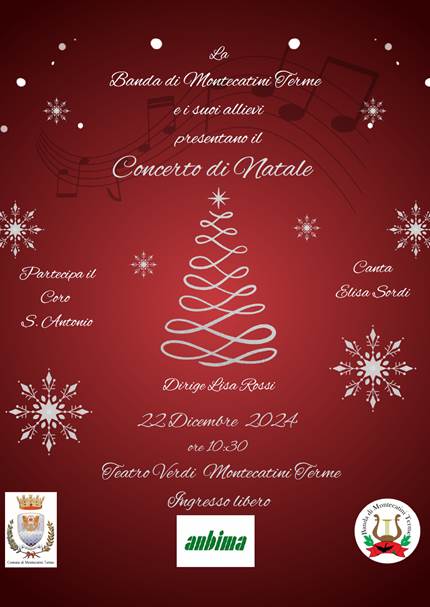 Domenica 22 dicembre 2024, dalle 10 alle 12, presso il Teatro Verdi, appuntamento con il tradizionale Concerto di Natale della Banda Musicale di Montecatini Terme.