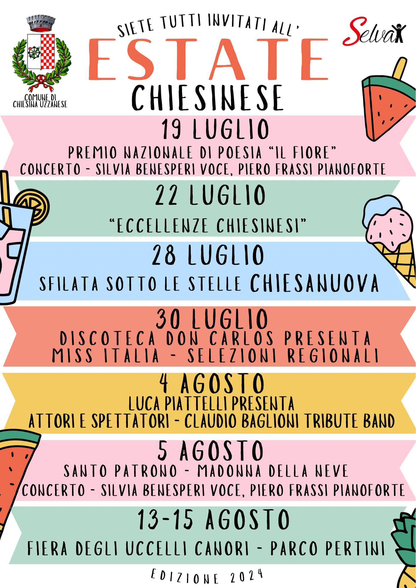 Il Comune di Chiesina Uzzanese propone un calendario di iniziative per vivere al meglio l’Estate Chiesinese.