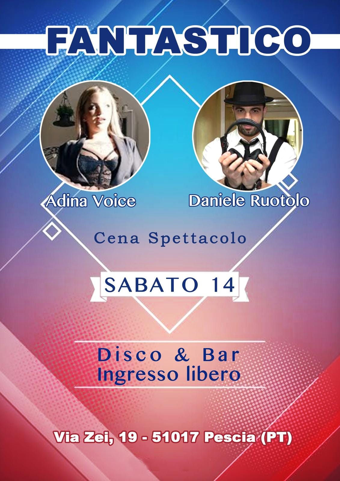 Sabato 14 settembre 2024, cena con spettacolo Una Mas al Bar Fantastico (ex Bar Marika), con una console esplosiva curata da Daniele Ruotolo e Adina Voice.
