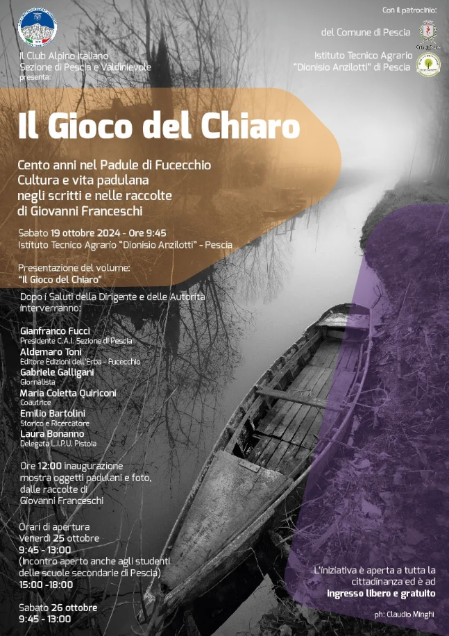 Da sabato 19 a sabato 26 ottobre 2024, presso l’Istituto Tecnico Agrario Statale Dionisio Anzilotti di Pescia, mostra di oggetti padulani e foto raccolte di Giovanni Franceschi.