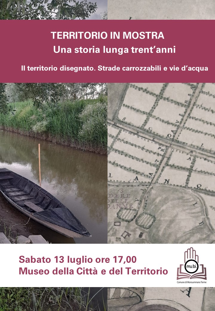 Sabato 13 luglio 2024, alle ore 17, secondo incontro della temporanea Territorio in mostra. Una storia lunga trent’anni dal titolo Il territorio disegnato. Strade carrozzabili e vie d’acqua, sul tema delle vie di comunicazione, stradali e fluviali, che hanno segnato il nostro territorio nel corso dei secoli.