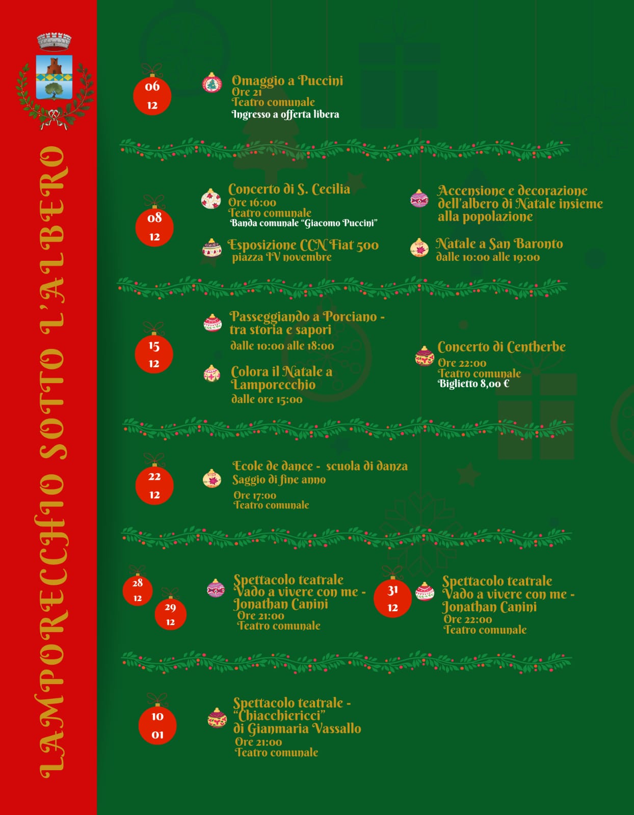 Il Comune di Lamporecchio vi invita a celebrare il Natale con un ricco programma di eventi dedicato a grandi e piccoli.