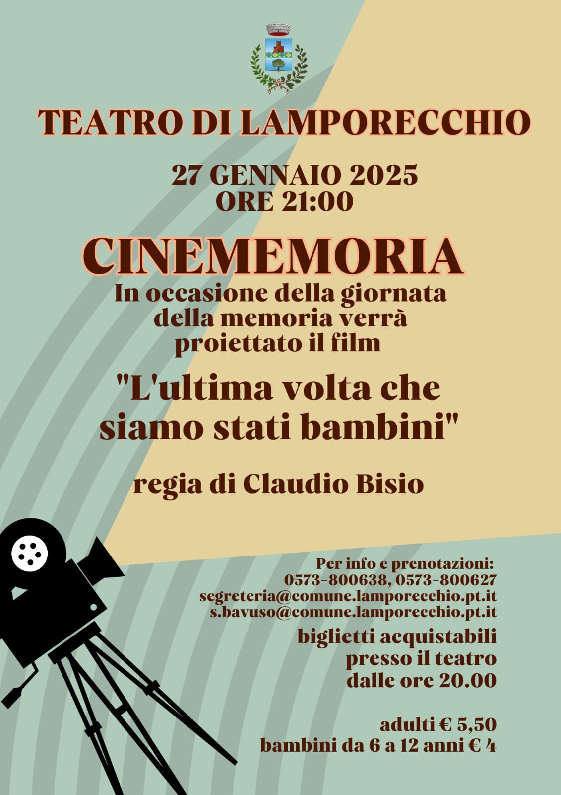 Lunedì 27 gennaio 2025, alle ore 21, presso il Teatro comunale di Lamporecchio, in occasione della Giornata della Memoria, verrà proiettato il film L’ultima volta che siamo stati bambini. Regia di Claudio Bisio.