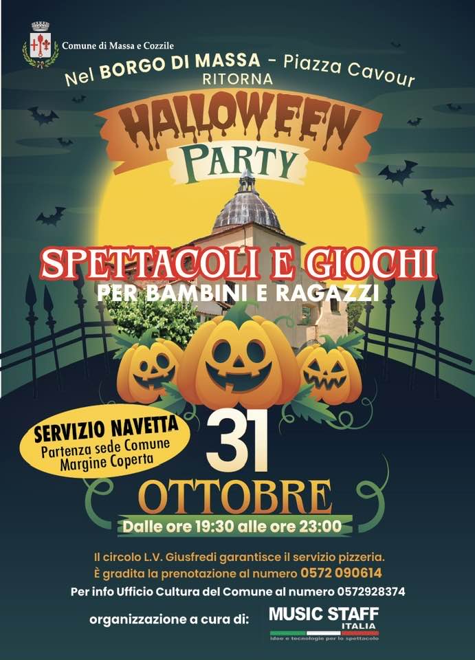 In Piazza Cavour, all’interno della suggestiva cornice del borgo di Massa, Halloween Party con spettacoli e giochi per bambini e ragazzi.