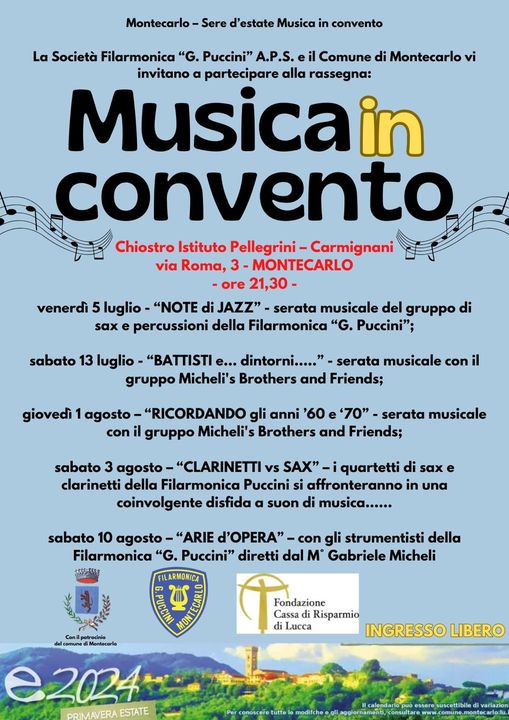 La rassegna musicale è organizzata dalla Filarmonica Giacomo Puccini con il patrocinio del Comune di Montecarlo.
