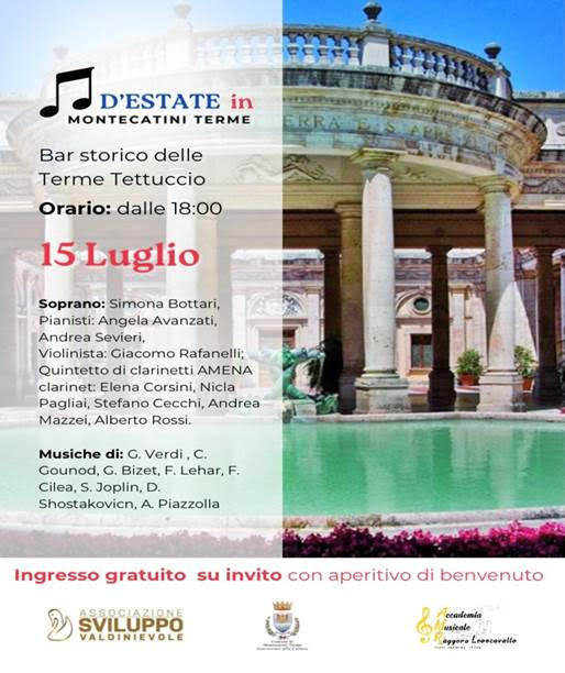 Il concerto Note d’Estate è aperto a tutti e per partecipare è sufficiente pagare il costo d’ingresso alle Terme Tettuccio.