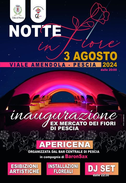 L’Amministrazione Comunale di Pescia è lieta di invitarvi all’inaugurazione dell’Ex Mercato dei Fiori, che si terrà sabato 3 agosto 2024, dalle ore 20.