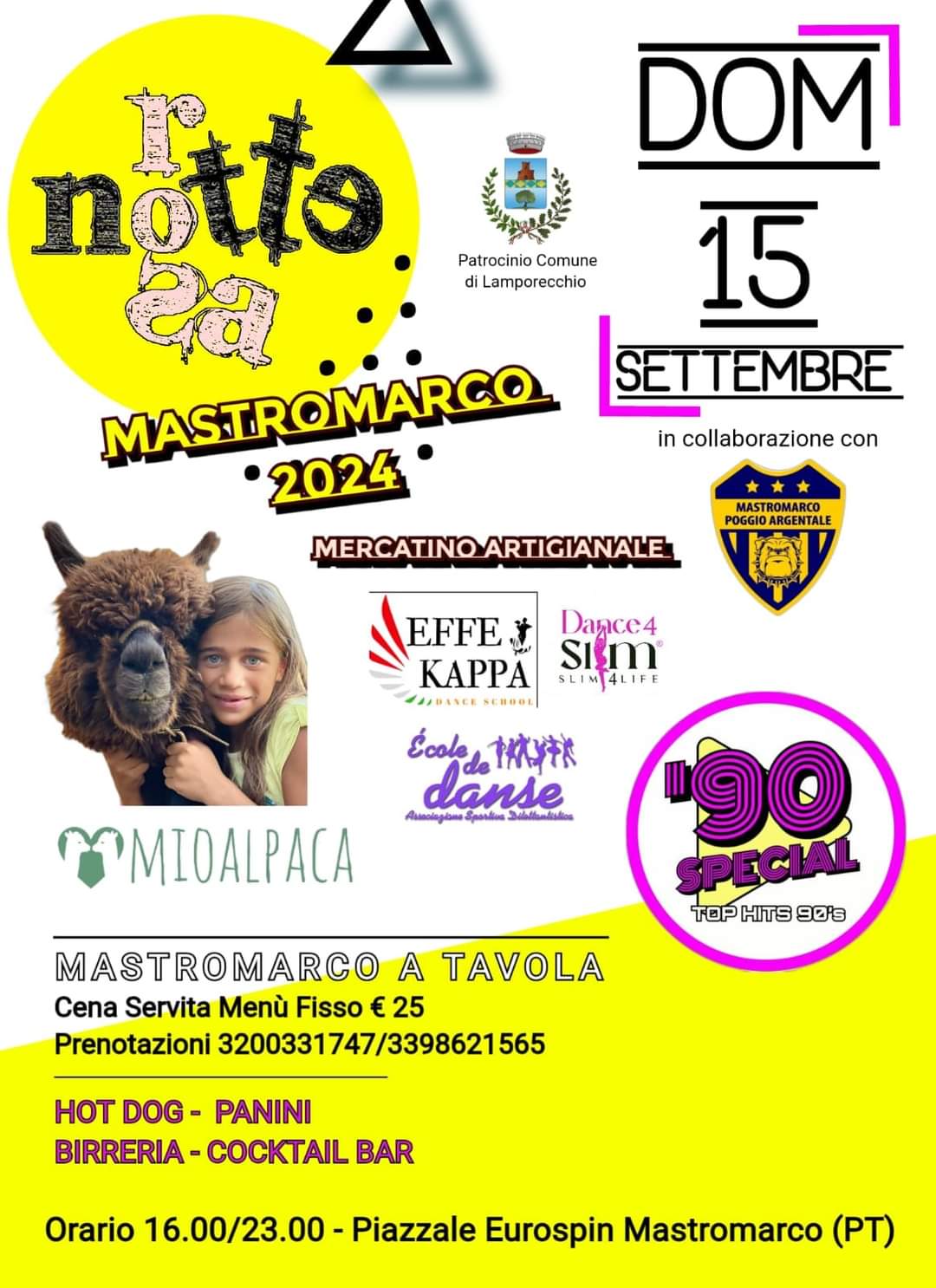 Domenica 15 settembre 2024, dalle 16 alle 23, presso il piazzale Eurospin a Mastromarco, a Lamporecchio, torna la manifestazione Notte Rosa Mastromarco con musica 90 Special – Top Hits 90’s, mercatino artigianale, street food e molto altro.
