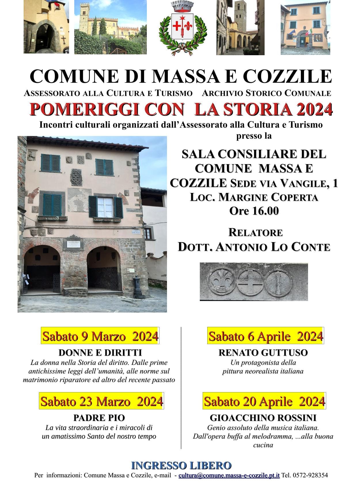 Presso la Sala Consiliare della Sede Comunale Massa e Cozzile, quattro conferenze per esplorare il passato e le sue sfaccettature.