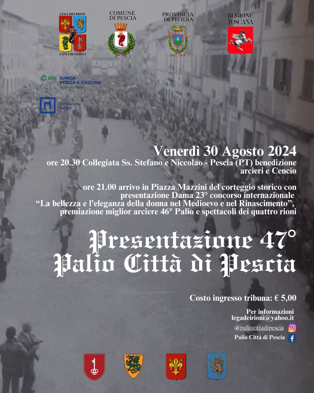 Venerdì 30 agosto presentazione del 47° Palio della Città di Pescia.