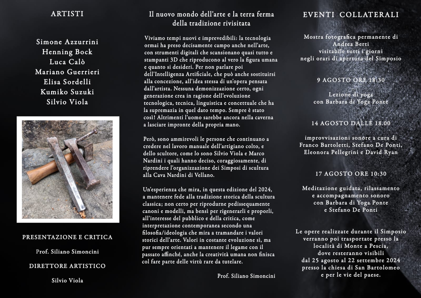 Da domenica 4 a sabato 17 agosto 2024, torna a Vellano, sulla Montagna Pesciatina, l’appuntamento con Ricominciamo… dal Classico.V Simposio di scultura. Scultori in cava.