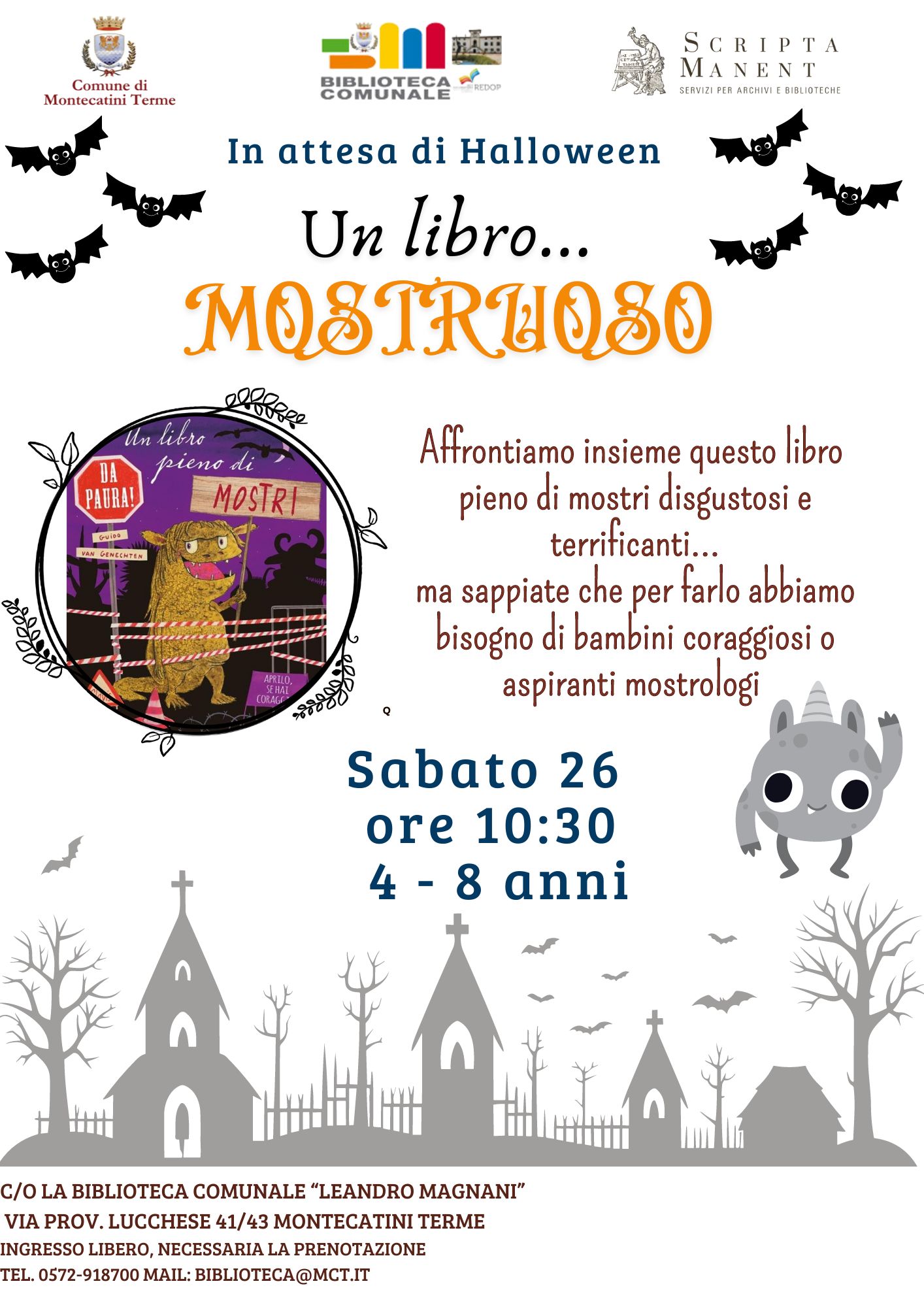 Sabato 26 ottobre 2024, alle ore 10.30, presso la Biblioteca Leandro Magnani di Montecatini Terme, letture e laboratorio per festeggiare Halloween partendo da Un libro pieno di mostri da paura! di Guido Van Genechten.
