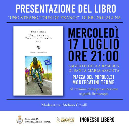 Mercoledì 17 luglio 2024, alle ore 21, sul sagrato della Basilica di Santa Maria Assunta a Montecatini Terme, presentazione del libro Uno strano Tour de France (Marco Del Bucchia Editore), nuovo libro di Bruno Ialuna. Modera il giornalista Stefano Cavalli.