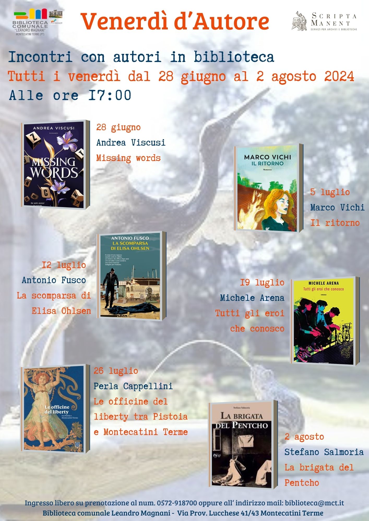 Ingresso libero su prenotazione al numero +39 0572 918700 o all’indirizzo biblioteca@mct.it