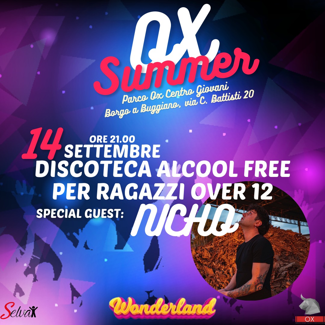 Sabato 14 settembre 2024, dalle 21 a mezzanotte, presso il Centro Giovani Ox di Borgo a Buggiano, arriva Wonderland, la discoteca educativa per ragazzi e ragazze che promuove un divertimento sano e responsabile.
