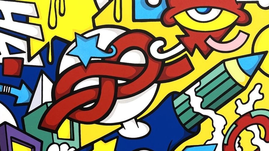 Con il suo stile unico, caratterizzato da audaci accostamenti cromatici e un tratto nero deciso, Roncarà porta a Larciano la propria arte.