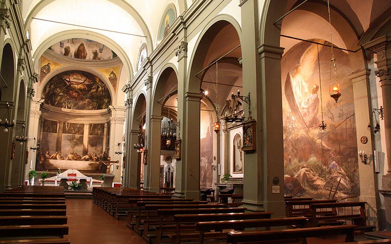 Temi biblici ed evangelici si succedono sulle pareti: ” Il Profeta Isaia e Geremia”, “Deposizione e Resurrezione di Cristo”, “L’ultima cena”, “I quattro cavalieri dell’Apocalisse”, “La Piscina Probatica”, “La Resurrezione di Lazzaro”, “Gesù nell’orto dei Getsemani”, la “Pentecoste” e altri.
